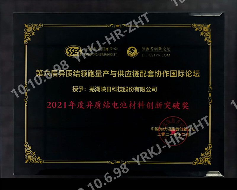 2021年度異質(zhì)結(jié)電池材料創(chuàng)新突破獎